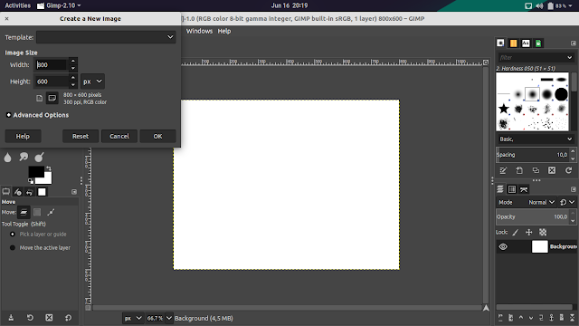 - Now open Gimp and create a new project with a width of 800 px and a height of 600 px.