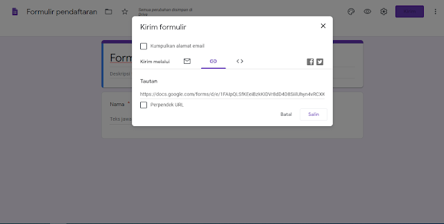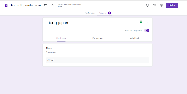 Then fill in, for example, the name Akmal. After filling it in, click send. After clicking the send button, return to the display where you input the form or questions.